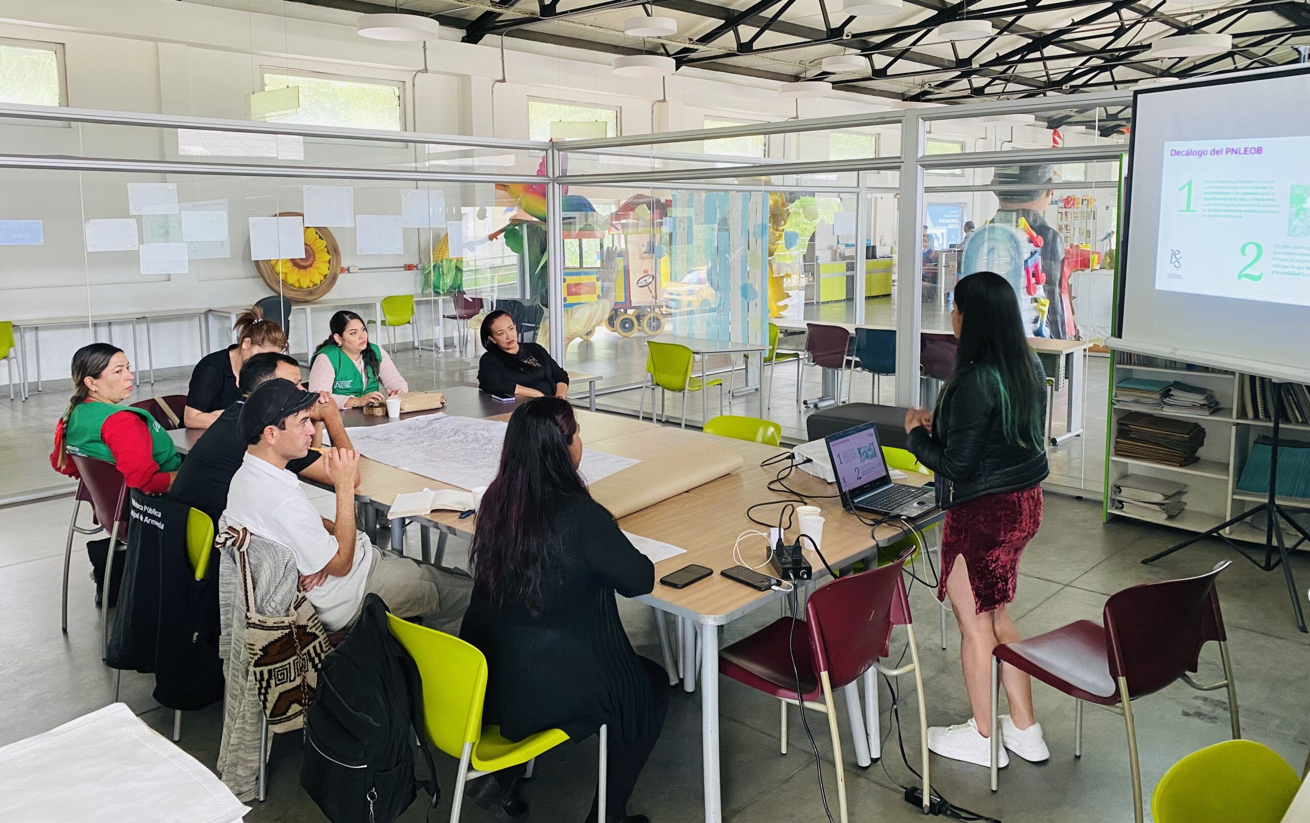 En la Biblioteca Pública Municipal Carmelina Soto Valencia se llevó a cabo la primera reunión presencial de apoyo técnico para la construcción del Plan Municipal de Lectura, Escritura, Oralidad y Bibliotecas (LEOB).  Durante el encuentro se realizó un mapeo del ecosistema de lectura, escritura y oralidad de las bibliotecas en el municipio de Armenia. En la reunión participaron promotores de lectura, quienes discutieron las necesidades y los desafíos que enfrenta el ecosistema local. Liliana Munera Gestora Territorial del Plan Nacional de Lectura, Escritura y Oralidad de Bibliotecas...