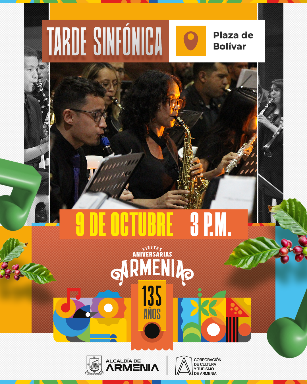 El miércoles 9 de octubre, a las 3:00 p.m., la Plaza de Bolívar se convertirá en el escenario de una experiencia musical excepcional con la Tarde Sinfónica. Este evento, que celebra la cultura y el talento local, contará con la participación de la Banda Sinfónica Juvenil de Armenia y la Banda Sinfónica Departamental del Quindío. Ambas bandas, reconocidas por su dedicación y pasión por la música, ofrecerán un repertorio variado que abarca desde el folclor colombiano hasta repertorio internacional. Este encuentro, no solo es una oportunidad para disfrutar de melodías cautivadoras,...