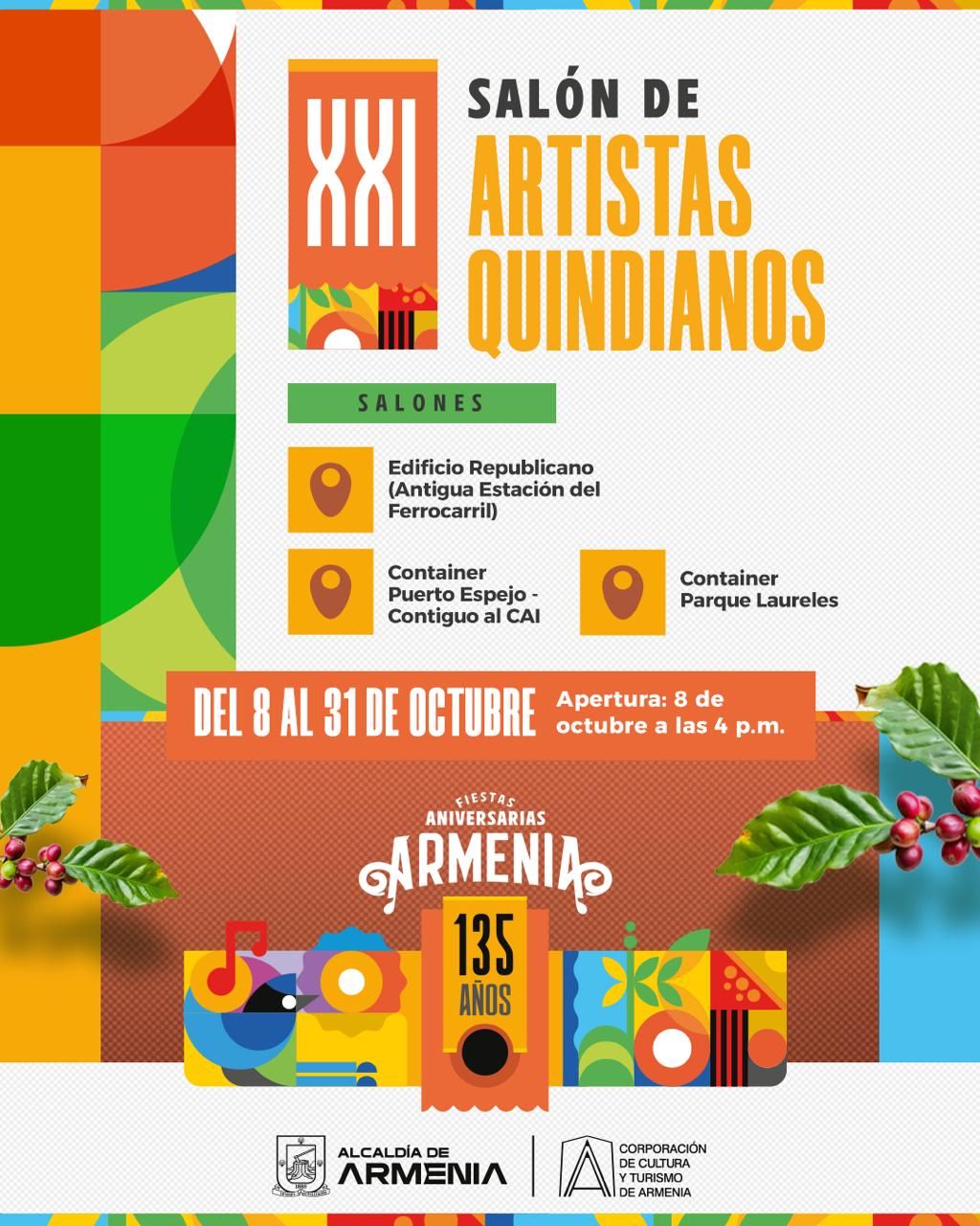 ¡Atención a todos los armenios y visitantes! Hoy, es la inauguración de la versión número XXI del Salón de Artistas, un evento único que promete llevar el arte a nuevas dimensiones. La inauguración se llevará a cabo hoy martes 8 de octubre, a partir de las 3:00 p.m. La exhibición permanecerá abierta al público hasta el 31 de octubre, comenzando a las 4:00 p.m., en las instalaciones de Corpocultura, ubicadas en la antigua estación del ferrocarril, edificio Republicano, primer piso. Este año se realizarán exposiciones en varios puntos de la ciudad, utilizando contenedores adaptados...