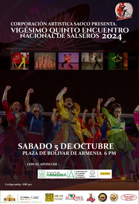 Academias, escuelas, orquestas y grupos salseros de todo el país se reunirán en una misma tarima este sábado 5 de octubre para engalanar la Plaza de Bolívar, a partir de las 6:00 p.m. y llenar de sabor estas fiestas aniversarias de los 135 años de la capital quindiana. Cerca de 300 bailarines, entre quindianos de Armenia, Quimbaya, Filandia, entre otros; y del resto del país estarán presentado lo mejor de sus repertorios en la versión No. 25 del Encuentro Nacional de Salseros 2024. Además, habrá una muestra de los mejores melómanos e historiadores de la salsa de diferentes partes...