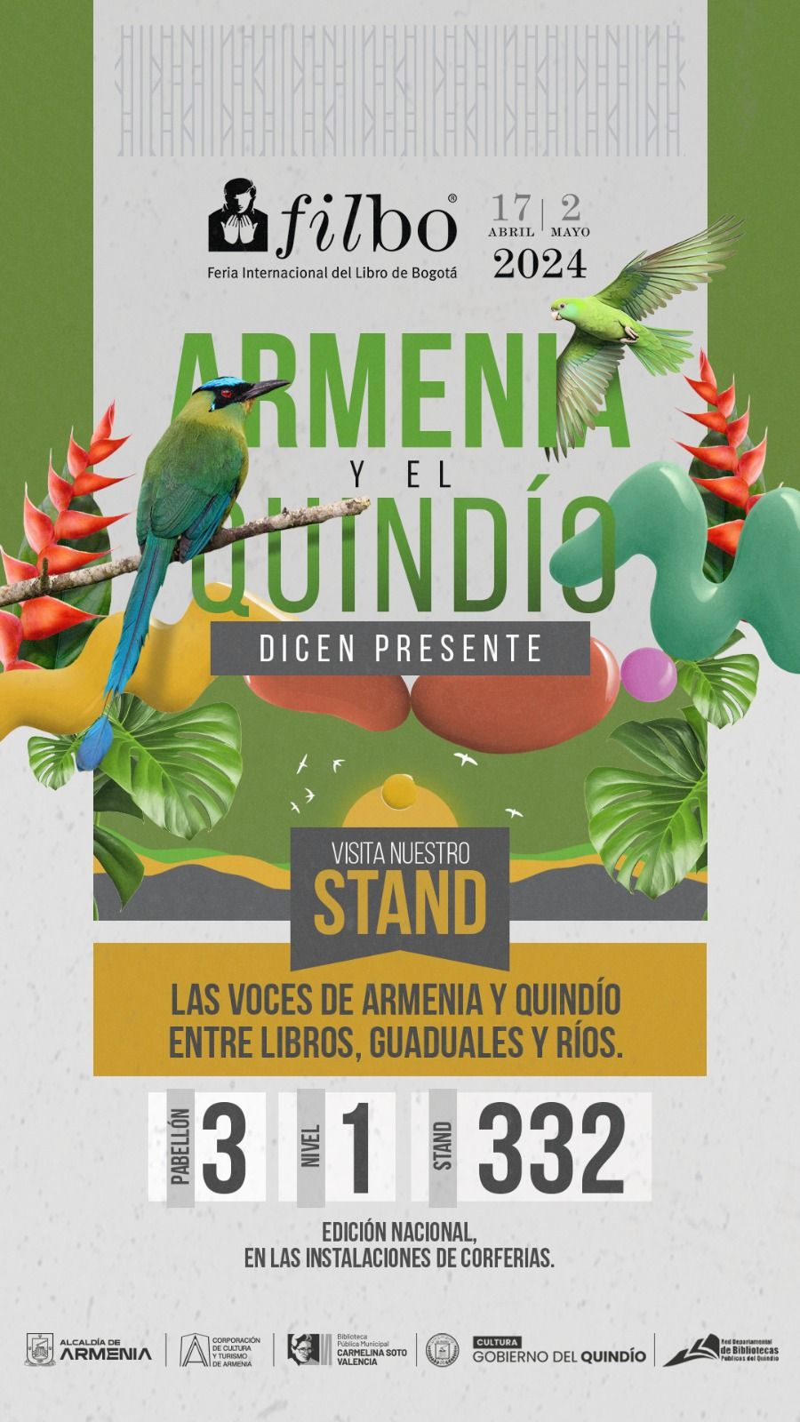 Desde hoy, 17 de abril hasta el 2 de mayo, se llevará a cabo la Feria Internacional del Libro de Bogotá 2024 (FILBO) y, por primera vez, la presencia de Armenia y el Quindío promete enriquecer aún más este evento literario. Brasil, como país invitado de honor, contribuirá con su rica diversidad cultural y literaria. La fiesta de libros, lectura y naturaleza de la FILBO, será para el departamento del Quindío y la ciudad de Armenia un evento significativo. Por primera vez, contará con la presencia de autores, escritores, editores y artistas de nuestra región. Este evento está apoyado...