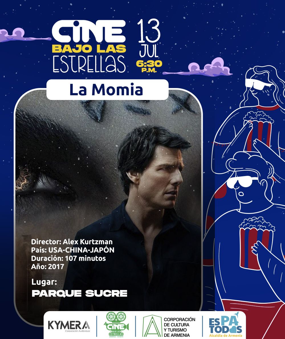 Cine Bajo las Estrellas llega este jueves 13 de julio con su ciclo “Divercine” al Parque Sucre con la película “Momia” del director estadounidense Alex Kurtzman, donde el legendario Tom Cruise hace presencia como protagonista.Con este proyecto la Corporación de Cultura y Turismo de Armenia busca continuar generando espacios sanos de esparcimiento y cultura para todos los públicos a través de la proyección de cortos y películas en espacios al aire libre en los parques de la ciudad de Armenia.La invitación es para todos los cuyabros este jueves a partir de las 6:00 p.m.Sinopsis: Una antigua...