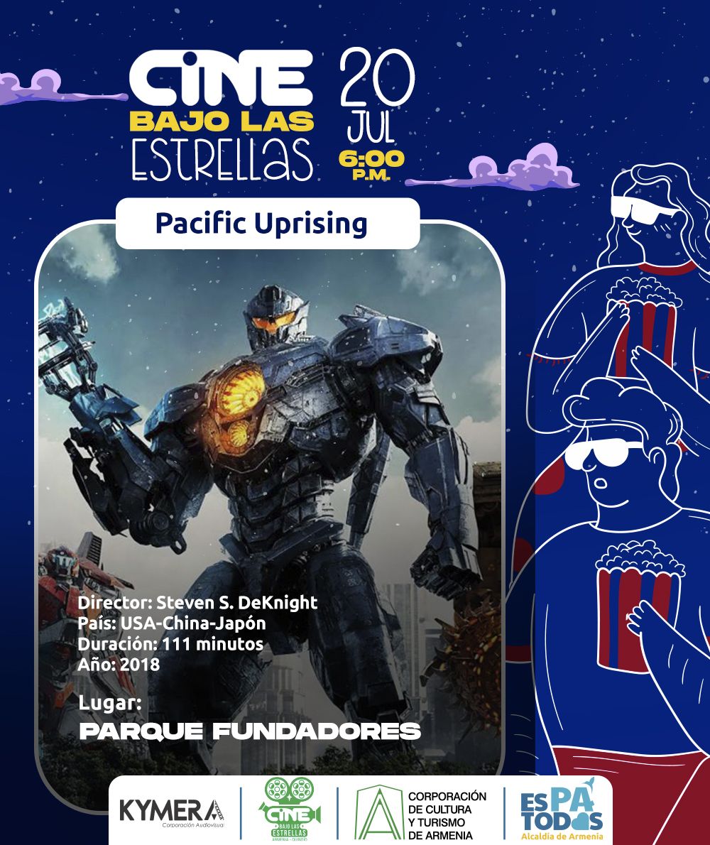 Divercine es el segundo ciclo de Cine Bajo las Estrellas en este 2023 y continúa llegando a los espacios al aire libre de la ciudad de Armenia con diferentes propuestas cinematográficas aptas para toda la familia.Este 20 de julio a las 6:00 p.m. en el Parque Fundadores se proyectará la película “Titanes del Pacífico: la insurrección”, una cinta dirigida por Steven S. DeKnight, que da continuidad a la saga “Pacific Rim” del año 2013, una película de acción que durante el fin de semana de su estreno en el 2018 se posicionó como la película más vista en América del Norte, recaudando una cifra...