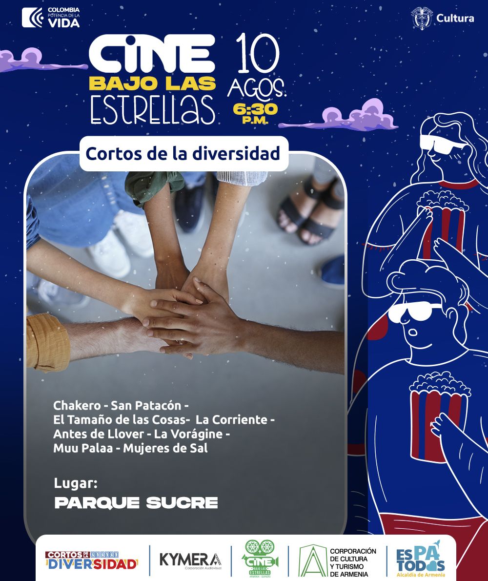 La Corporación de Cultura y Turismo de Armenia a través de la Corporación Kymera, inició el tercer ciclo de Cine Bajo las Estrellas: Colombia en Corto, una serie de producciones colombianas denominadas “cortos de la diversidad” apoyados por el Ministerio de Cultura que muestran la diversidad de los territorios narrando realidades y expresiones de nuestro país. Los cortometrajes que hacen parte de la primera parte de este ciclo son: – Lumbalú Agonía. Dirección Jorge Pérez. 2021.– Río de caracoles. Dirección Ángela Tobón Ospina. 2019.– María de...
