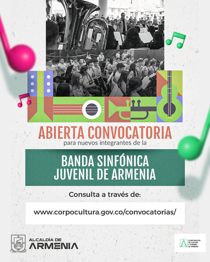 Durante todo el mes de febrero estarán abiertas las inscripciones para pertenecer a la Banda Sinfónica Juvenil de Armenia, proceso de formación musical gratuito liderado por el maestro Juan José Ramírez Gómez, que se desarrolla en las instalaciones del INEM José Celestino Mutis.
